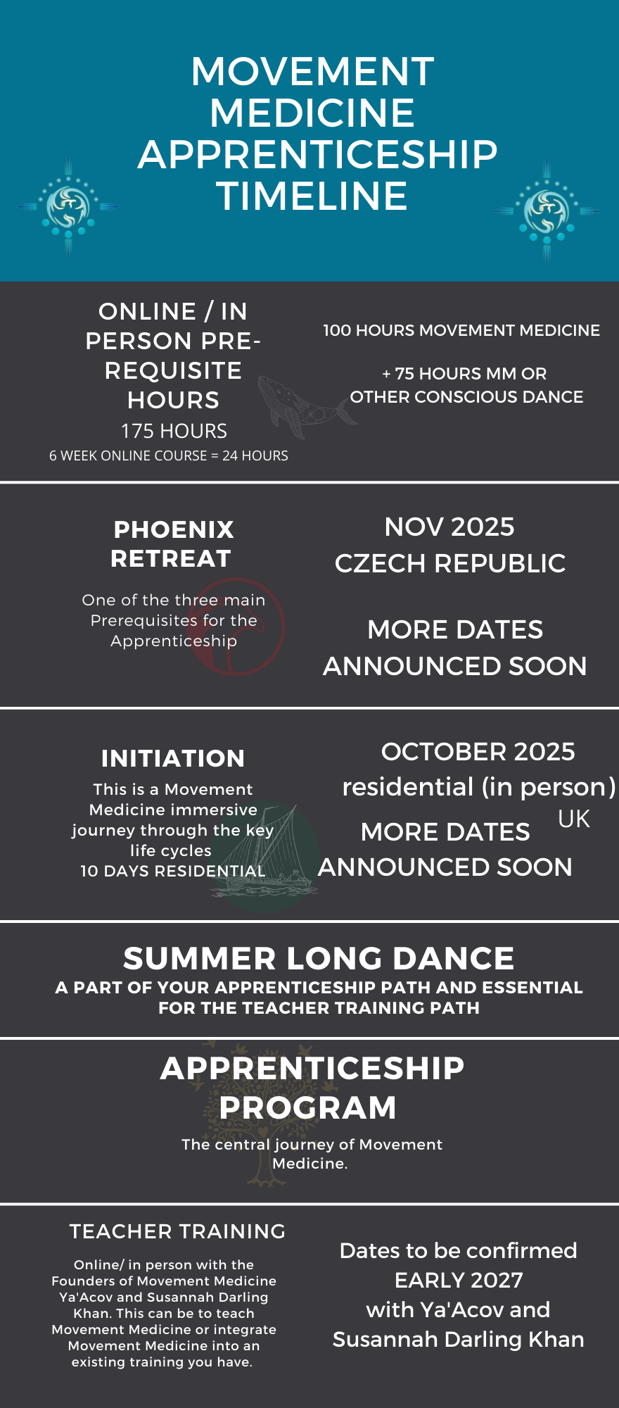 We fully recommend this programme and we are delighted that through it, his apprentices can enter the wider community of Movement Medicine Apprentices, for whom we will continue to offer ‘apprentice only’ gatherings over the years to come”